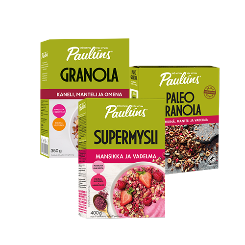 Paulúns-tuotteet on tehty siksi, että hyvät valinnat olisivat mahdollisimman helppoja ja maistuvia. Tuotteemme on valmistettu laadukkaista raaka-aineista, eikä niissä ole lisäaineita, ja ne sisältävät runsaasti ravintokuitua. Saat niistä myös hyviä rasvoja, proteiinia sekä vitamiineja ja kivennäisaineita.